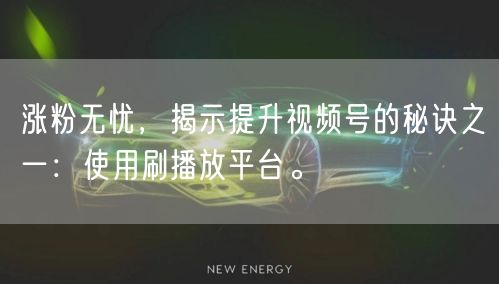 使用刷播放平台是提升视频号粉丝数量的有效途径之一。但需要注意的是,合理利用是关键。结合优质内容和创新运营策略,才能实现真正的涨粉无忧。