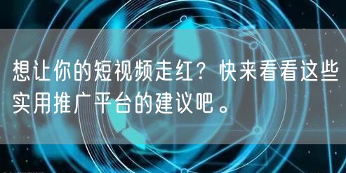 要想让短视频走红,除了内容质量要高之外,还需要掌握有效的推广方法和策略。通过本文介绍的几个实用推广平台,制定有效的推广策略,提高短视频的曝光率和点击率,轻松吸引大量观众。希望这些建议对你的短视频推广有所帮助!