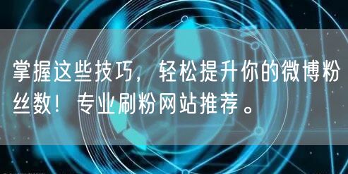 总之,要想轻松提升微博粉丝数,需要综合运用以上技巧和策略。同时,保持耐心和毅力,不断尝试和改进自己的方法,相信你一定能在微博上获得更多的关注和成功!