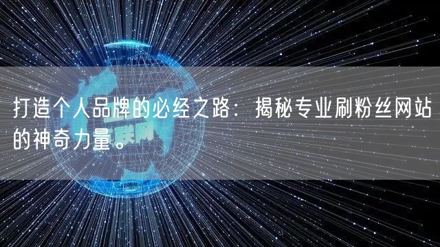 专业刷粉丝网站作为一种新兴的互联网服务,为个人品牌的发展提供了强有力的支持。这些网站通过一系列技术和策略,帮助用户快速增加社交媒体粉丝数量,提升影响力。它们不仅提供了便捷的粉丝增长途径,还为个人品牌的推广和传播提供了强大的动力。