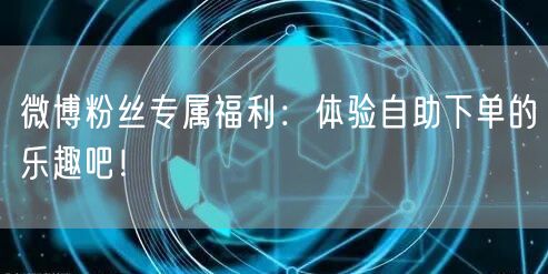 亲爱的微博粉丝们,赶快加入我们,体验自助下单的乐趣吧!在这里,您不仅可以享受到便捷的下单体验,还能感受到作为微博粉丝的特权。我们期待您的参与,一起共享这个独特的福利!